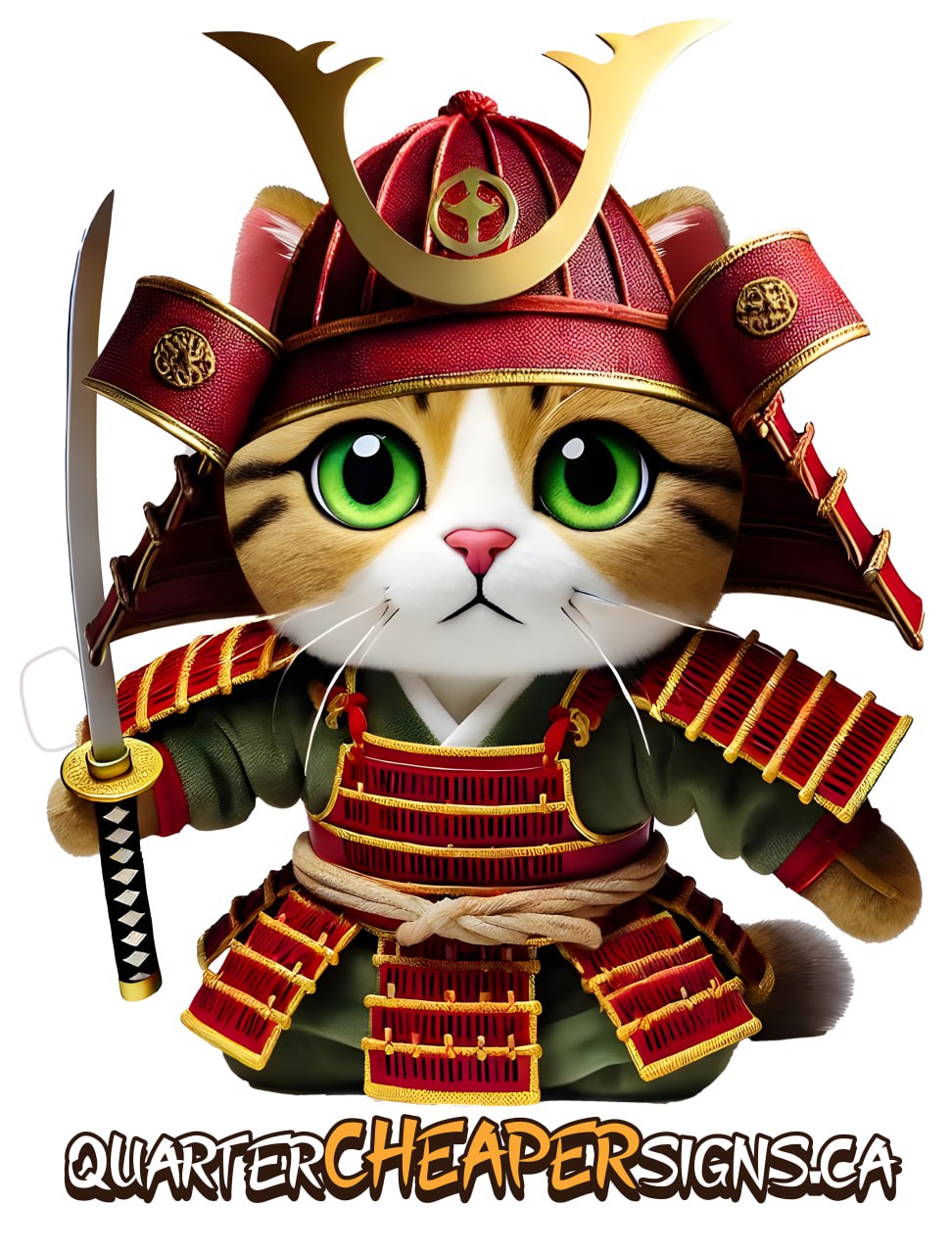 Our sign company name, Quarter Cheaper Signs, clearly reflects our business mission. Our company mascot, the British Shorthair Golden Cat, Samurai, uncompromisingly cuts a quarter off your signage costs. We manufacture the widest range of signs available, not only in full compliance with North American print signs standards, but at a quarter of the market average. This is our core principle and business model. We are ready to make signage office and other advertising products today at competitive prices!